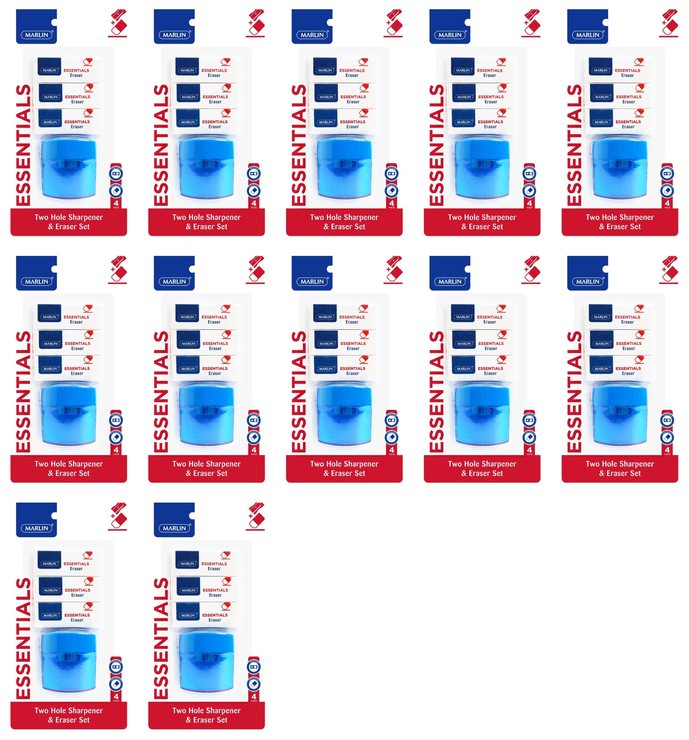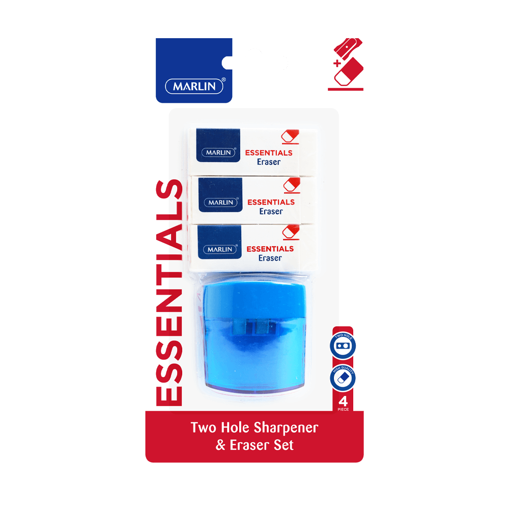 Marlin Eraser 3 Pack 60x20x10mm + 2 Hole Sharpener With Container