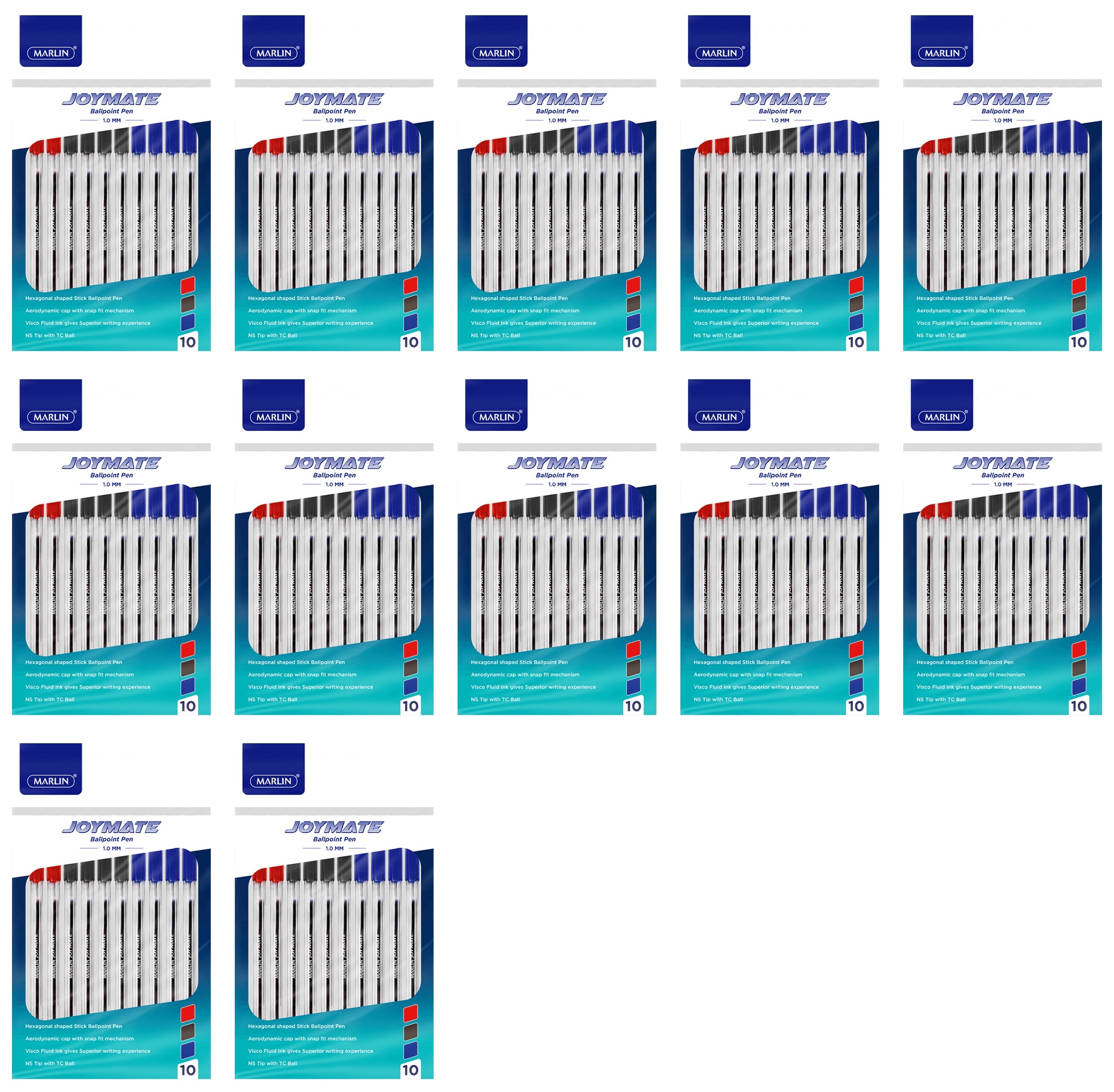 Marlin JOYMATE Ballpoint Pens, Medium Point-1.0mm, 4Blue & 4Blk & 2Red, 10 pcs in a Polybag