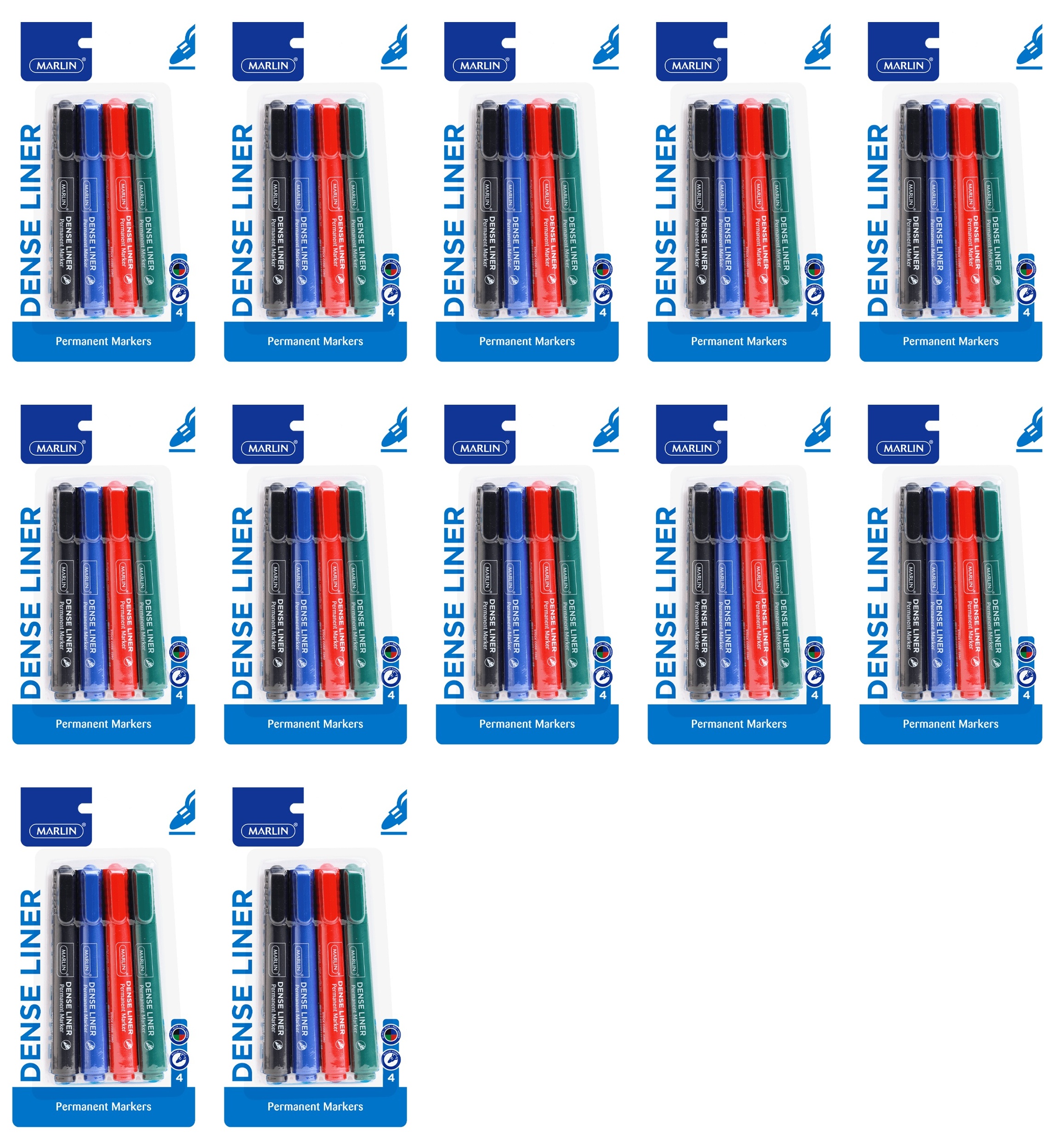 Dense Liners Permanent Marker 4’s 4’s Assorted – Black/blue/red/green