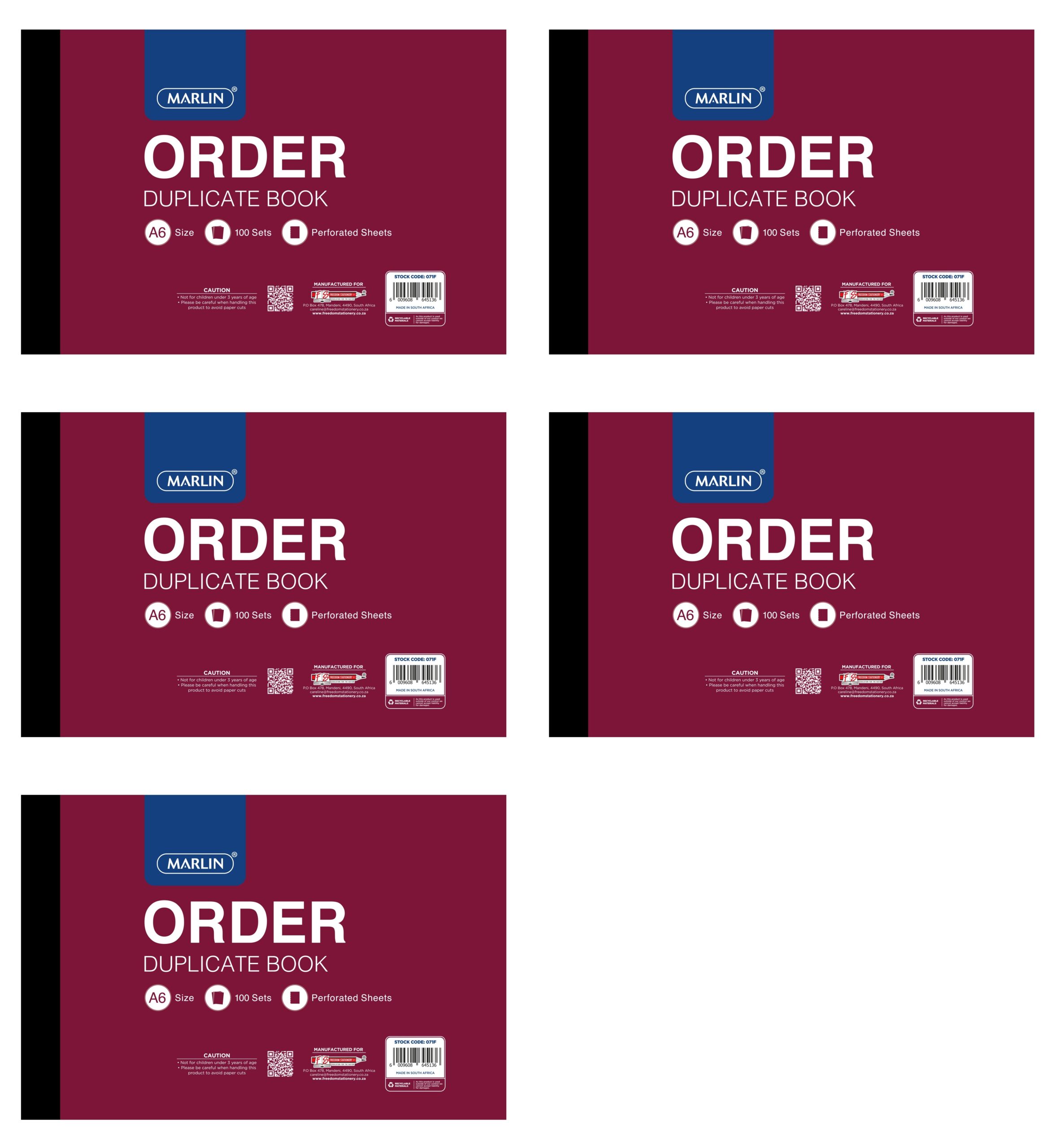 Marlin Duplicate A6 Books Order