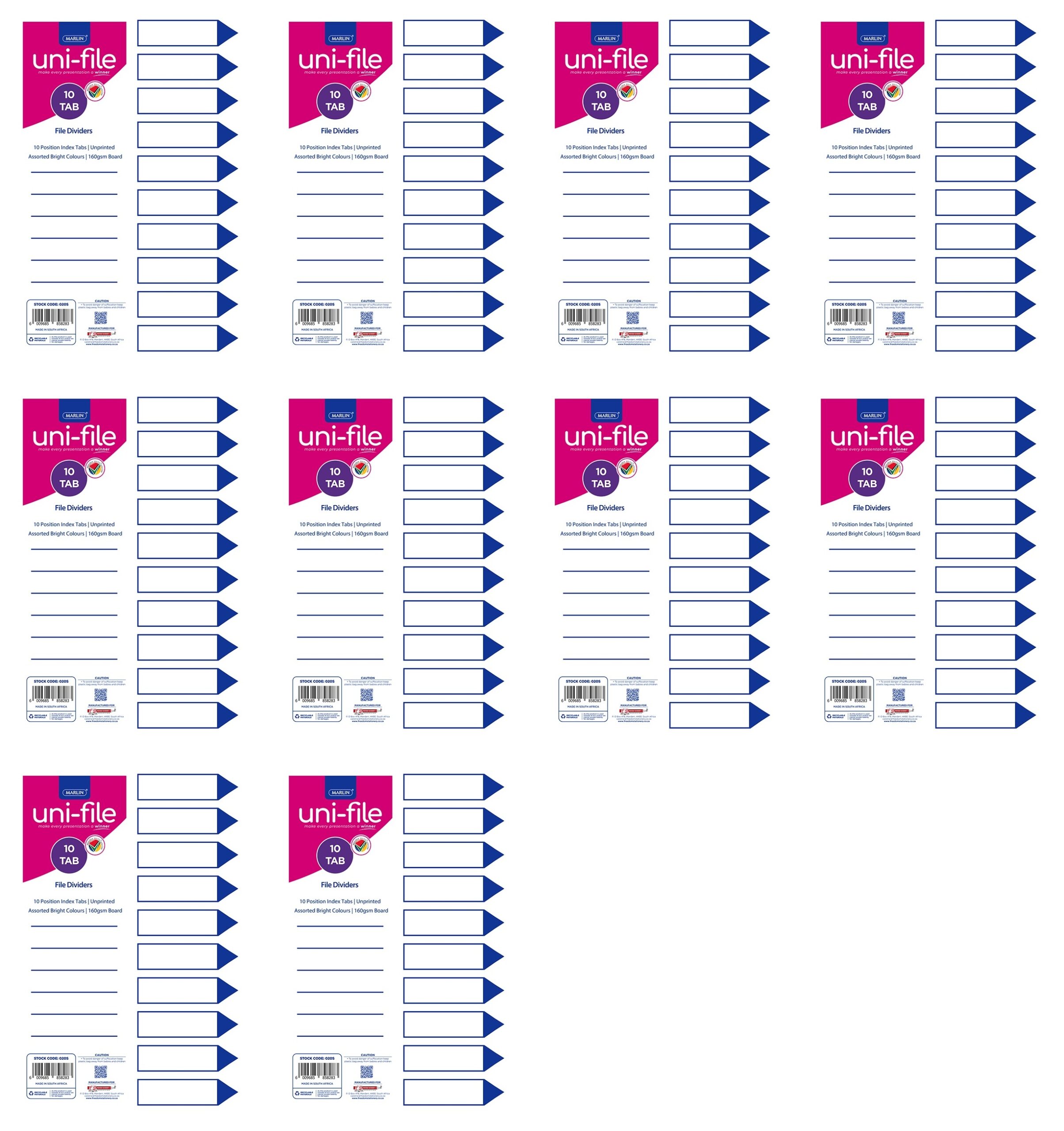 Marlin File Dividers / Indexes 160gsm Bright Board: 10 Position