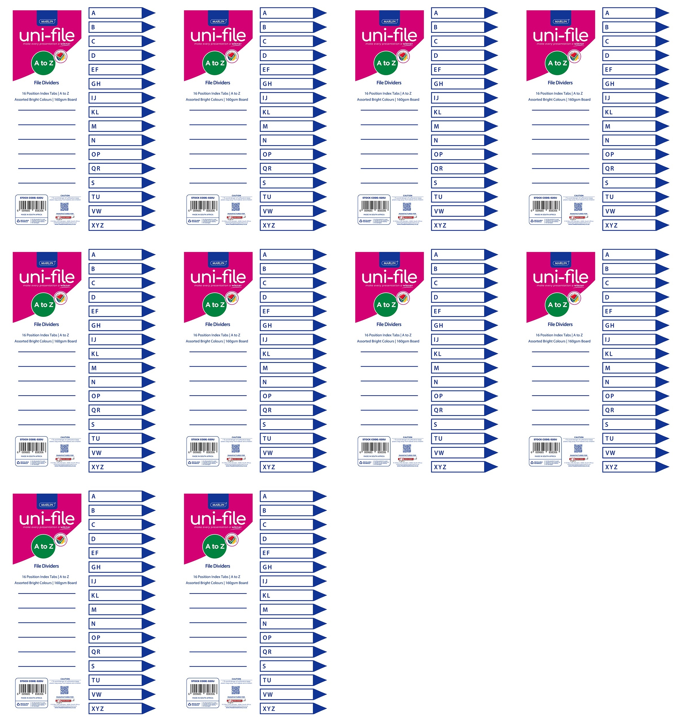 Marlin File Dividers / Indexes 160gsm Bright Board: A To Z 16 Position