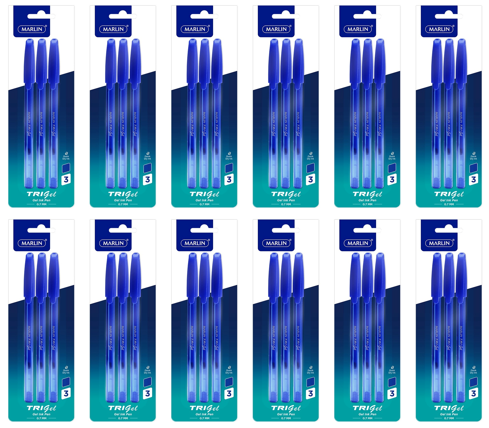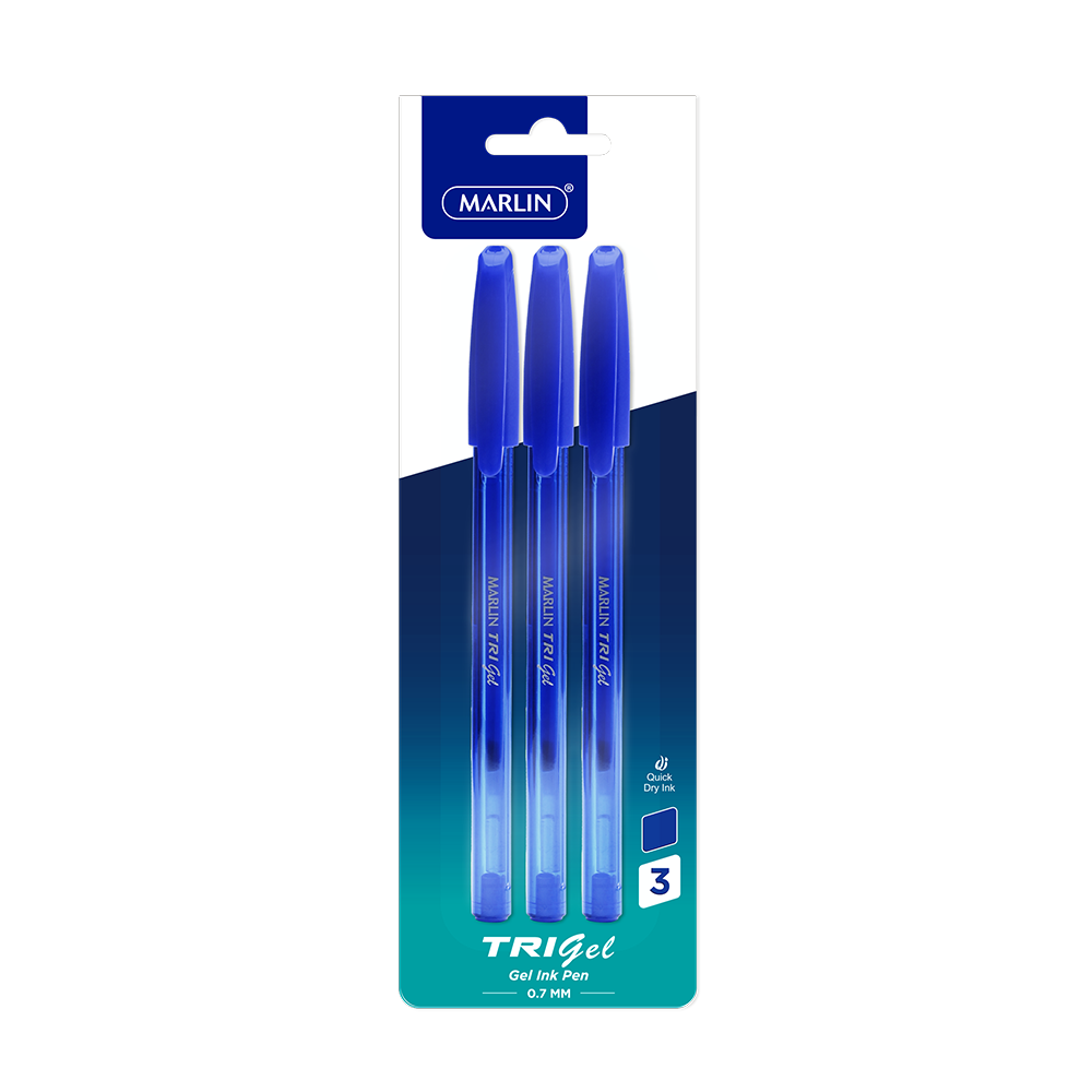 Marlin TRI-gel ink pens, Medium Point-0.7mm, Blue Ink, 3 pcs in a Polybag