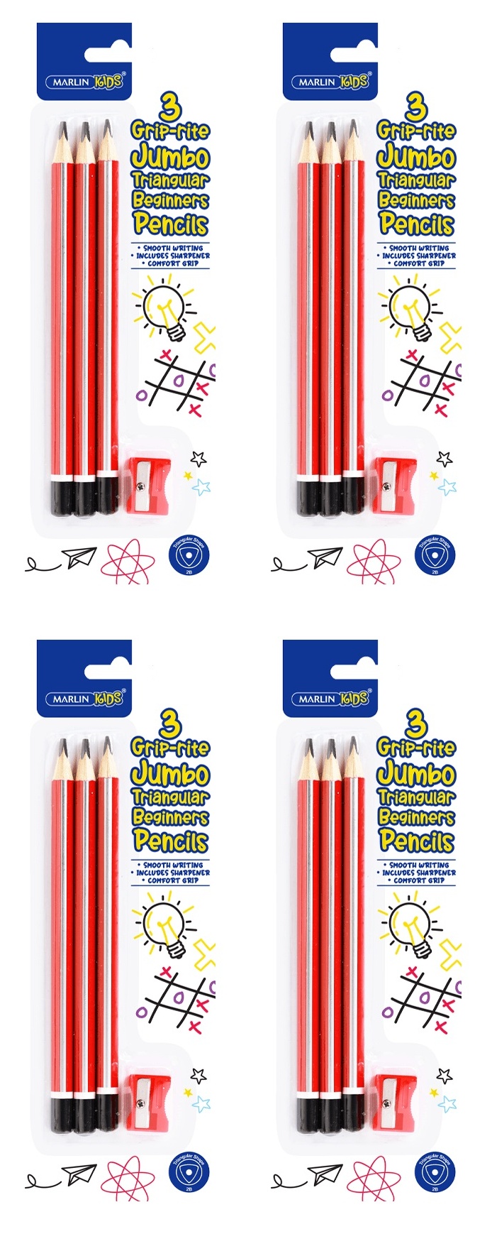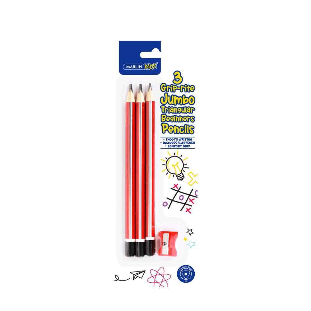 Marlin Kids End Dipped Pencil Triangular Jumbo Blister Card 3’s + Sharpener