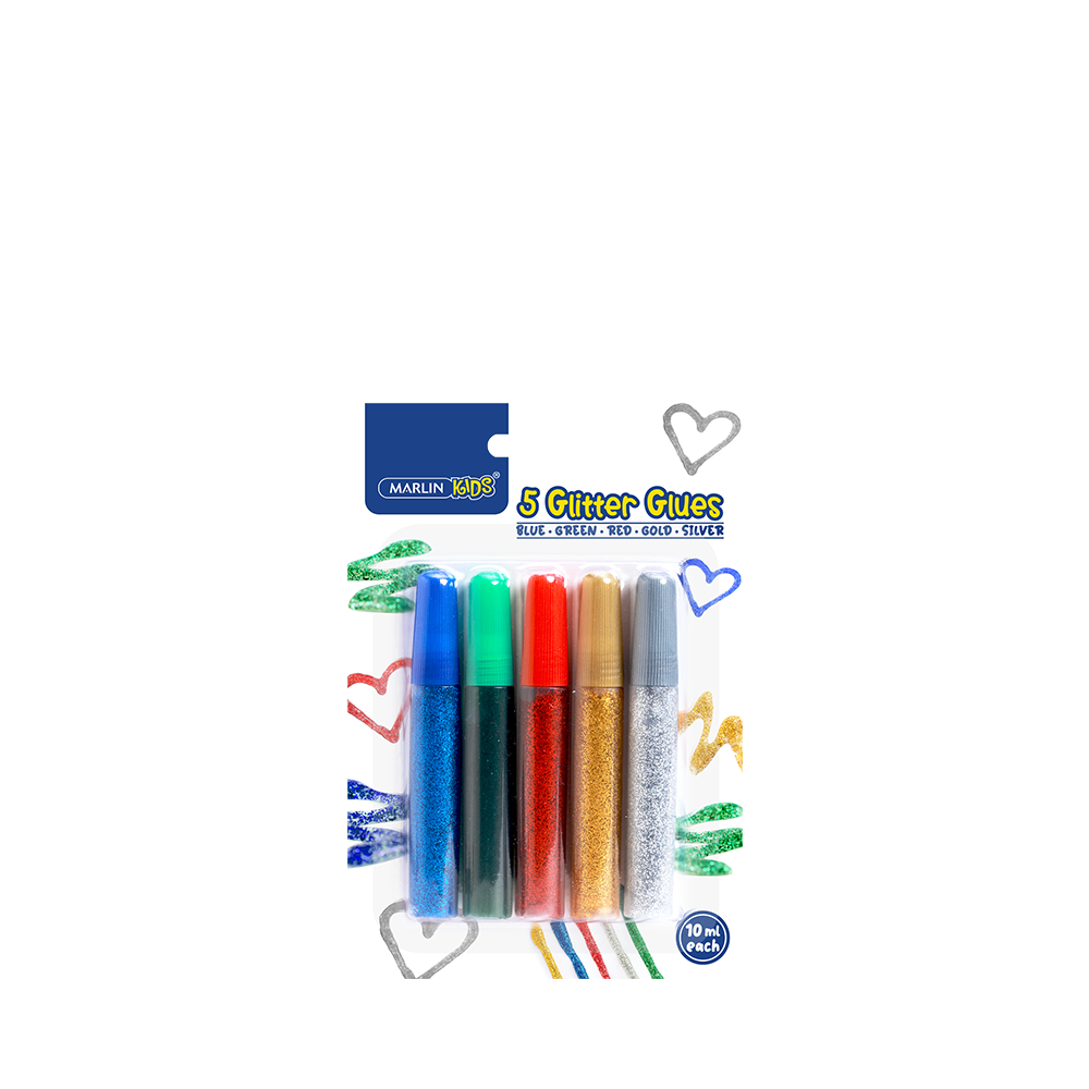 Marlin Kids Glitter Glue 10ml 5’s – Blue, Green, Red, Gold & Silver Blister Card