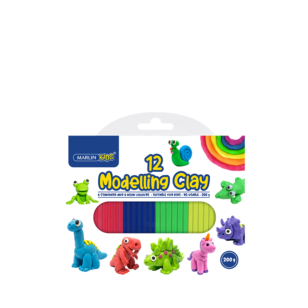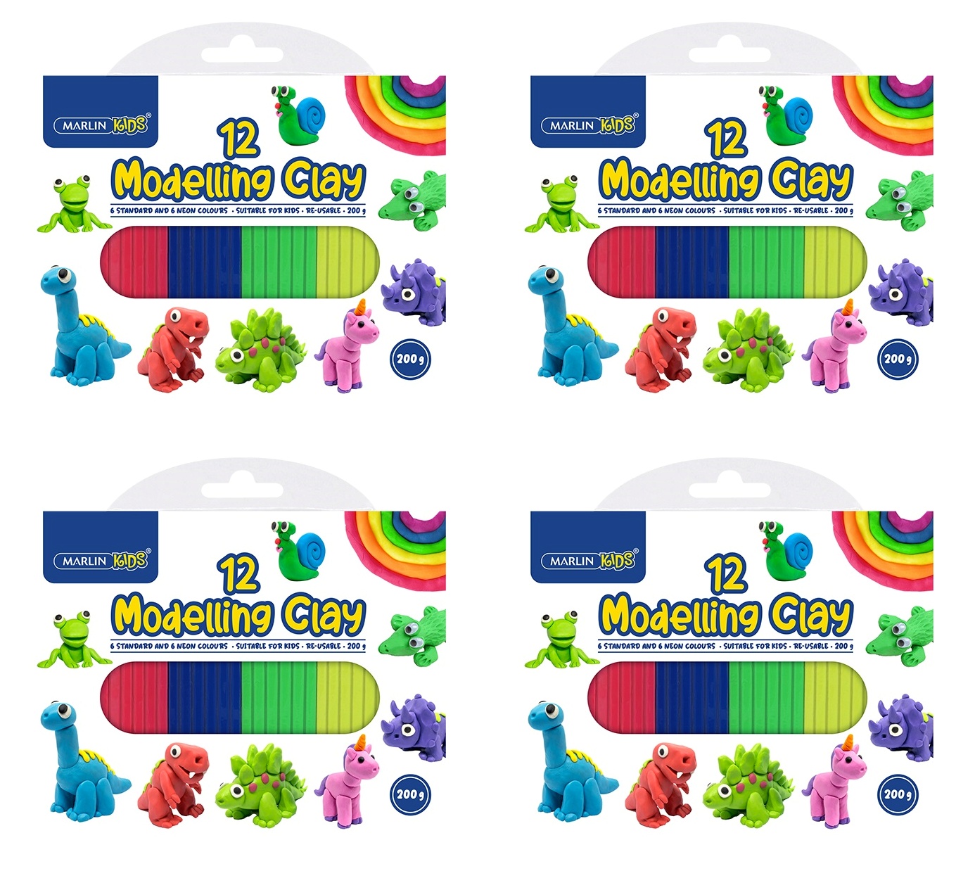 Marlin Kids Modelling Clay 200g 6 Neon & 6 Normal Colours