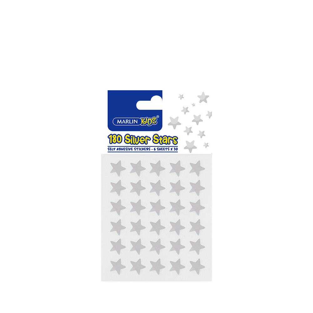 Marlin Kids Self Adhesive Stickers Silver Stars, 180’s
