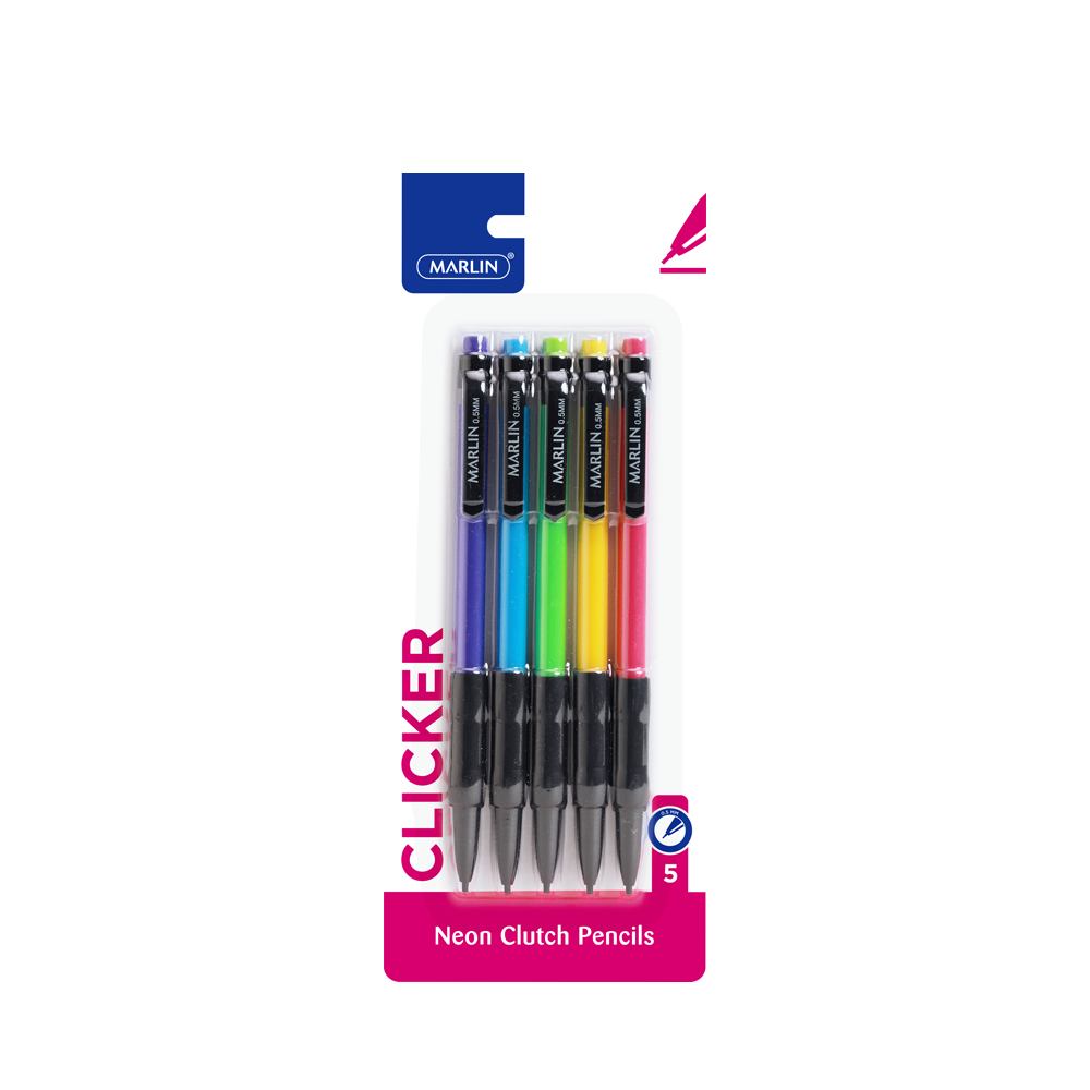 Marlin Neo Clickers Clutch Pencils 5’s Assorted 0.5mm NEW