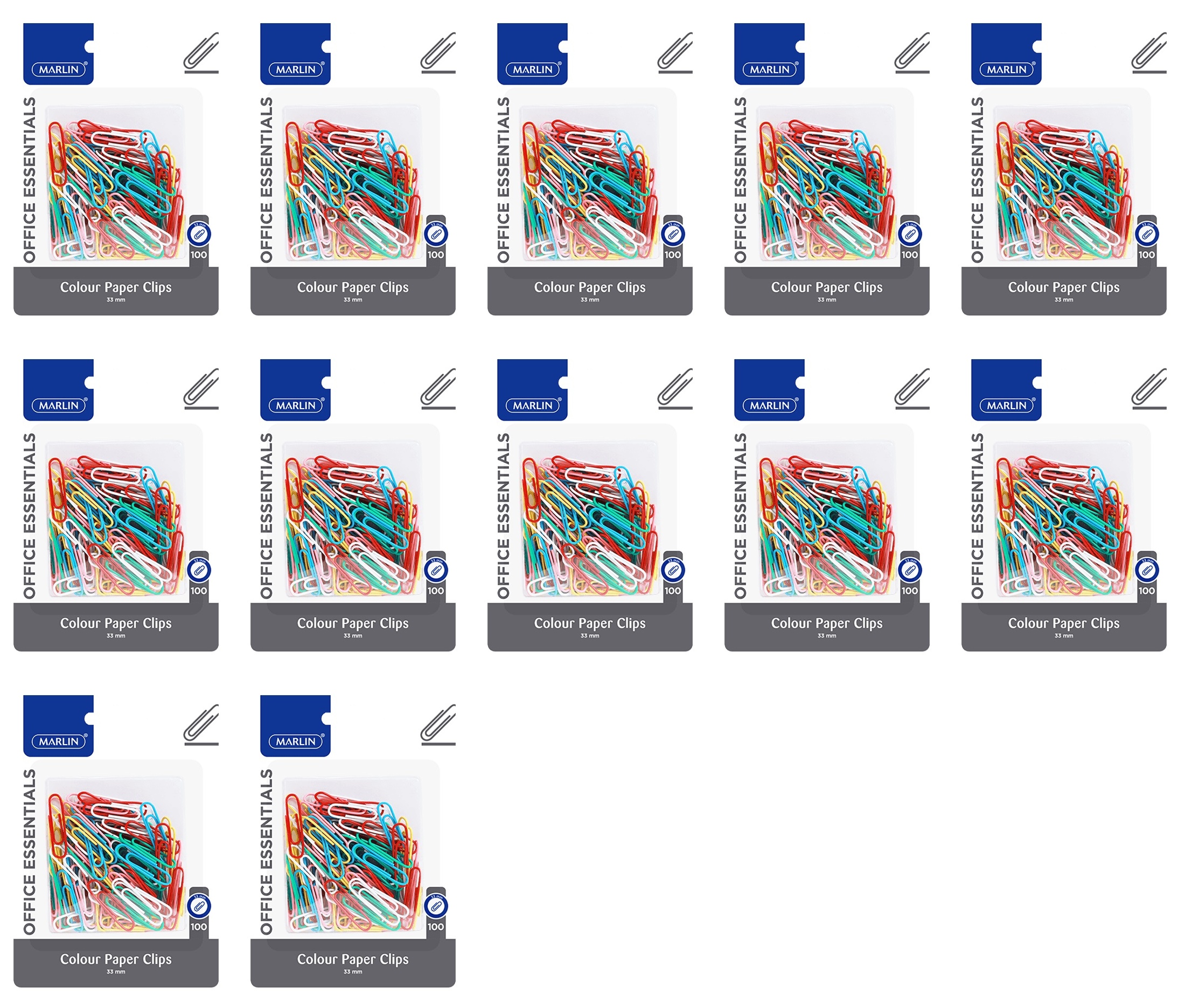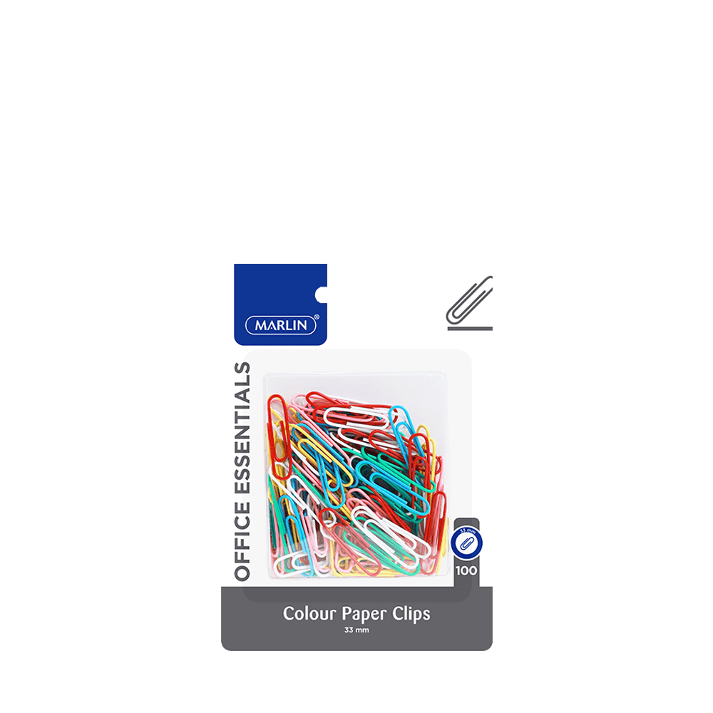 Marlin Office Essentials Colour Paper Clips 33mm 100’s Blister Card