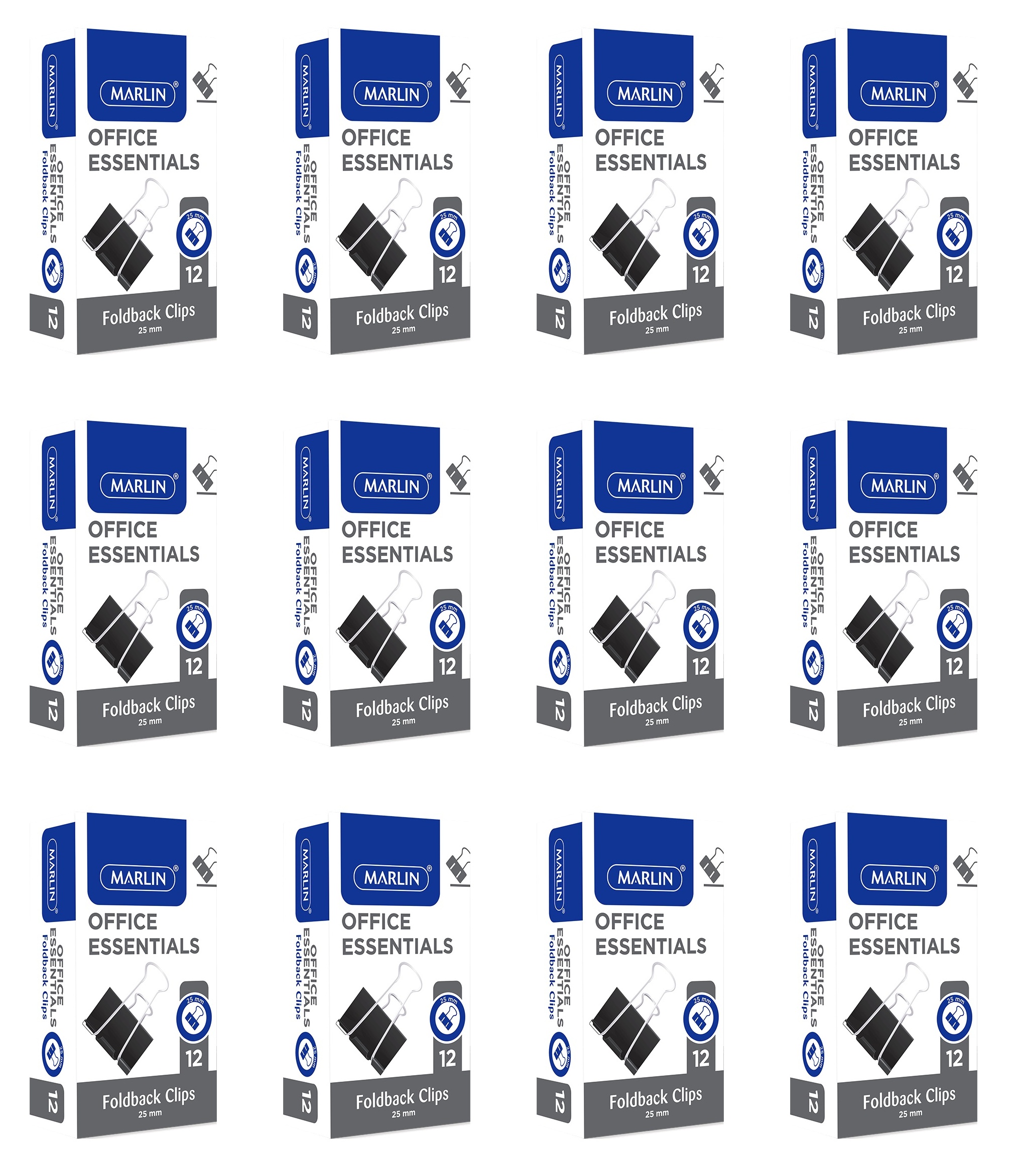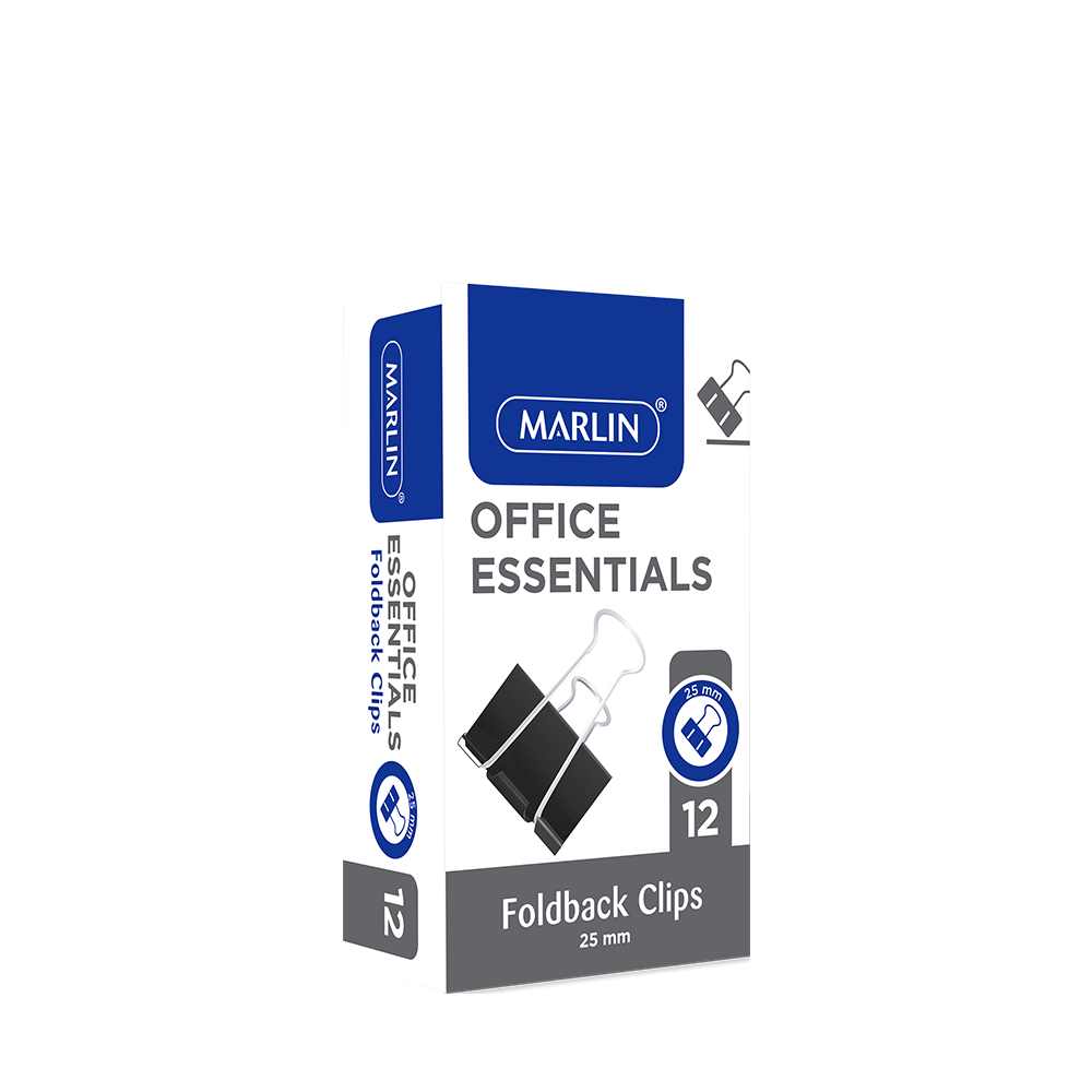 Marlin Office Essentials Fold Back Clips 25mm 12’s