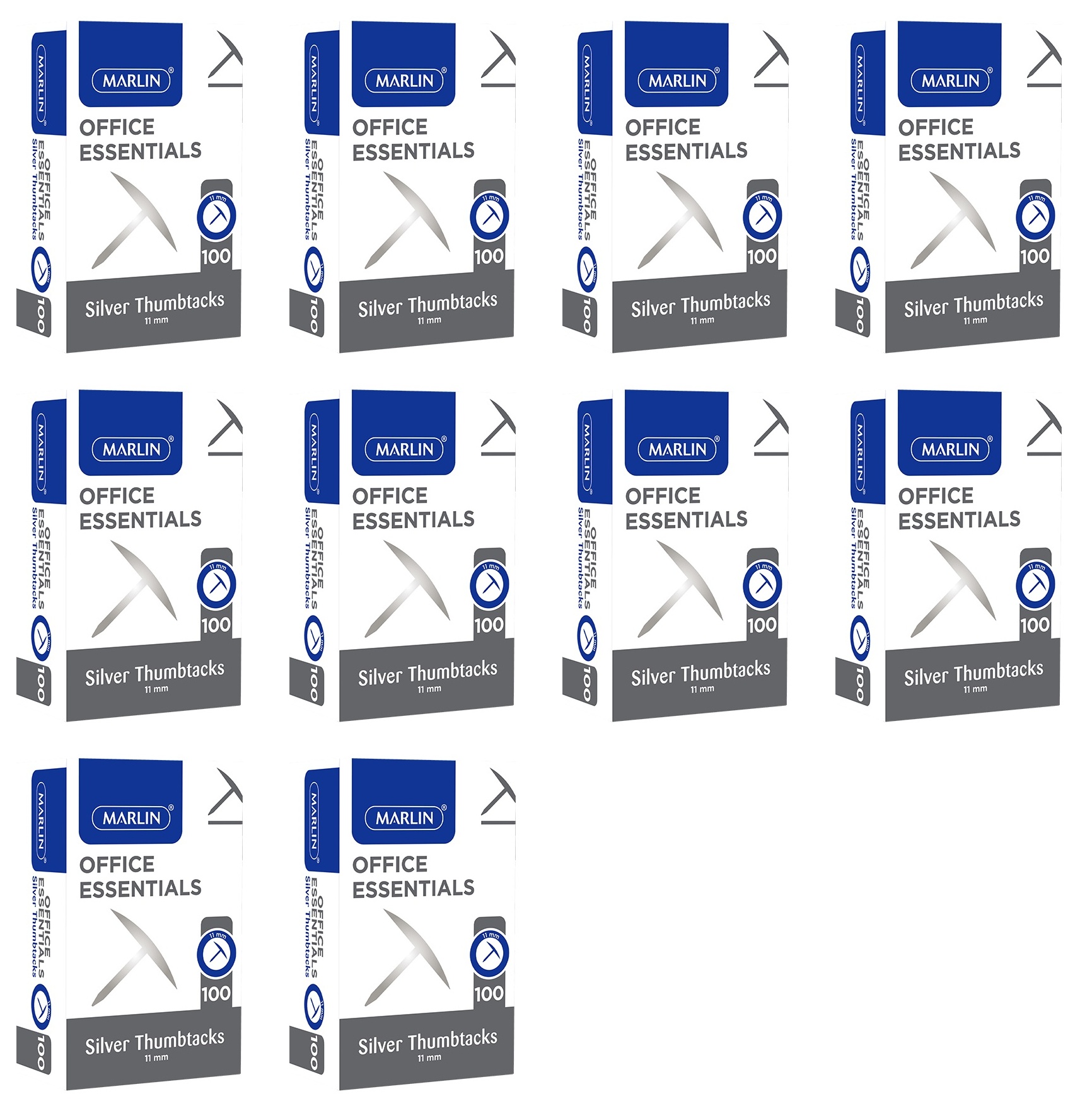 Marlin Office Essentials Silver Thumbtacks / Drawing Pins 11mm 100’s
