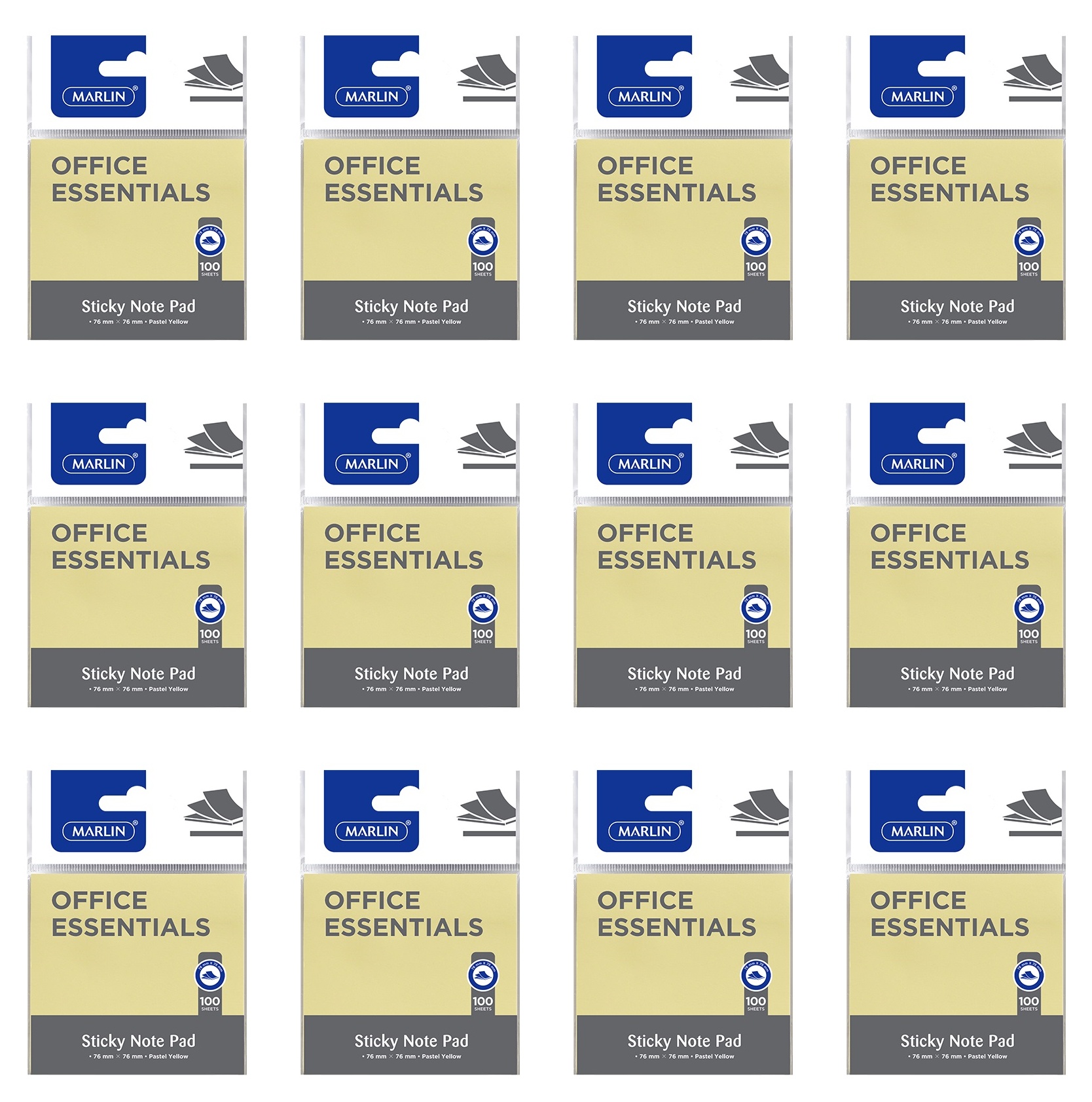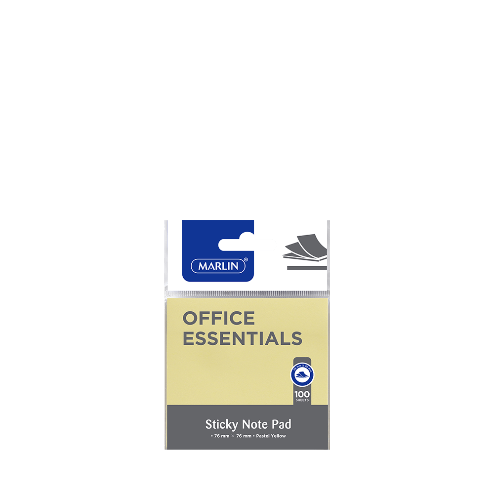 Marlin Office Essentials Sticky Note Pad 76 X 76mm 100 Sheets Pastel Yellow