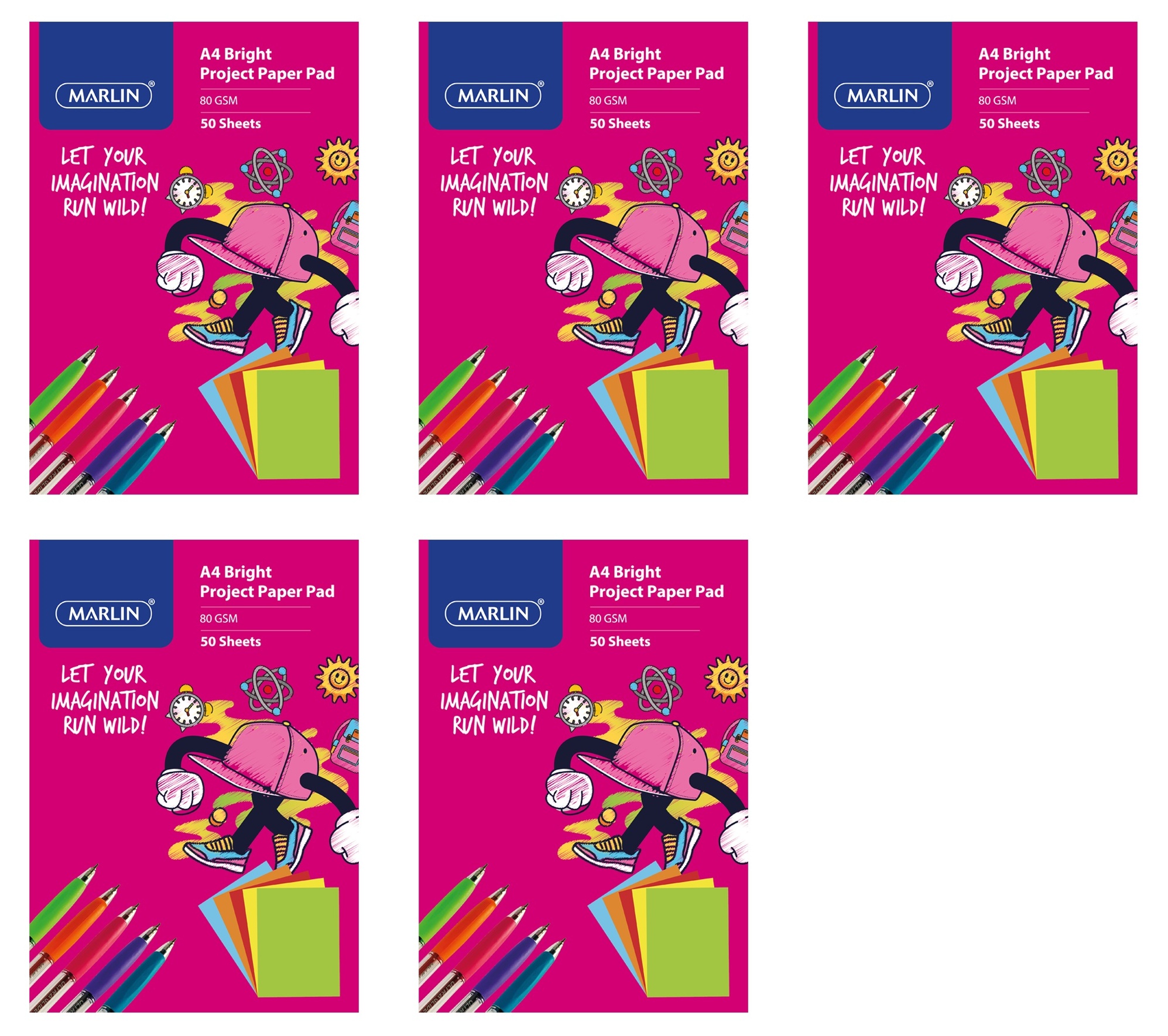 Marlin A4 Paper Pad 50 Sheets 80gsm Bright Assorted
