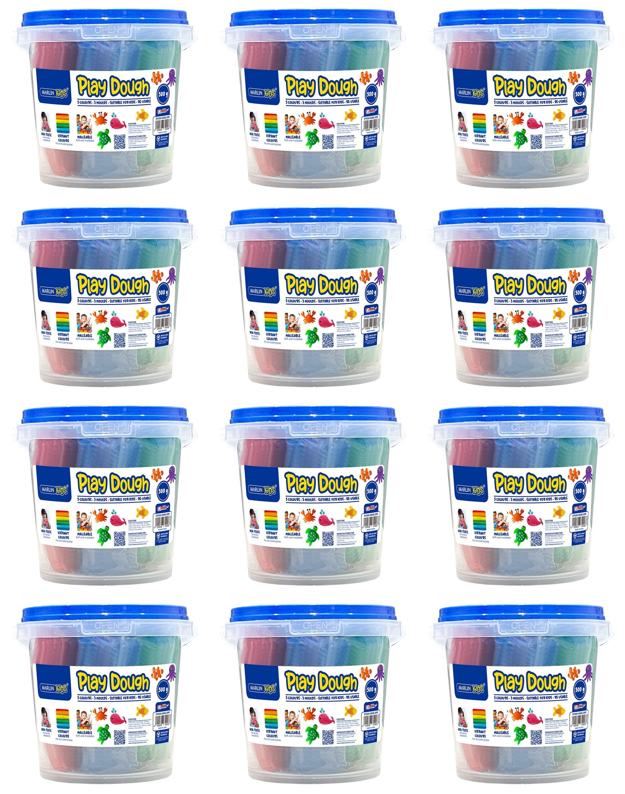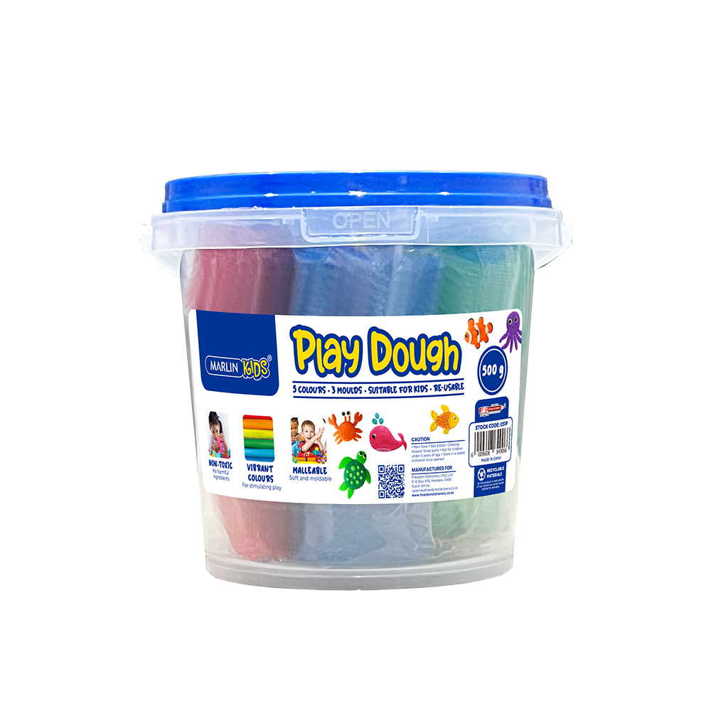 Marlin Play Dough 500g Bucket 5 Colour + 3 Moulds