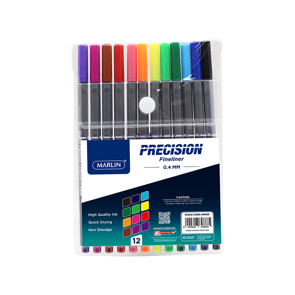 Precision Fineliner 12’s 0.4mm, 12’s Assorted Colours