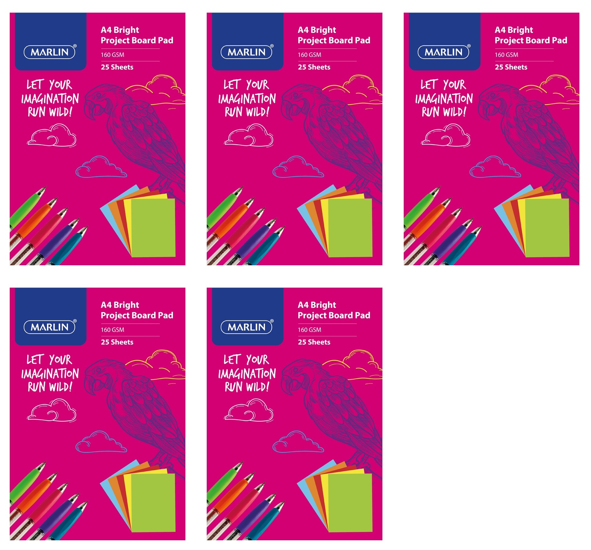 Marlin Project Board Pad A4 25 Sheets 160gsm Bright Assorted