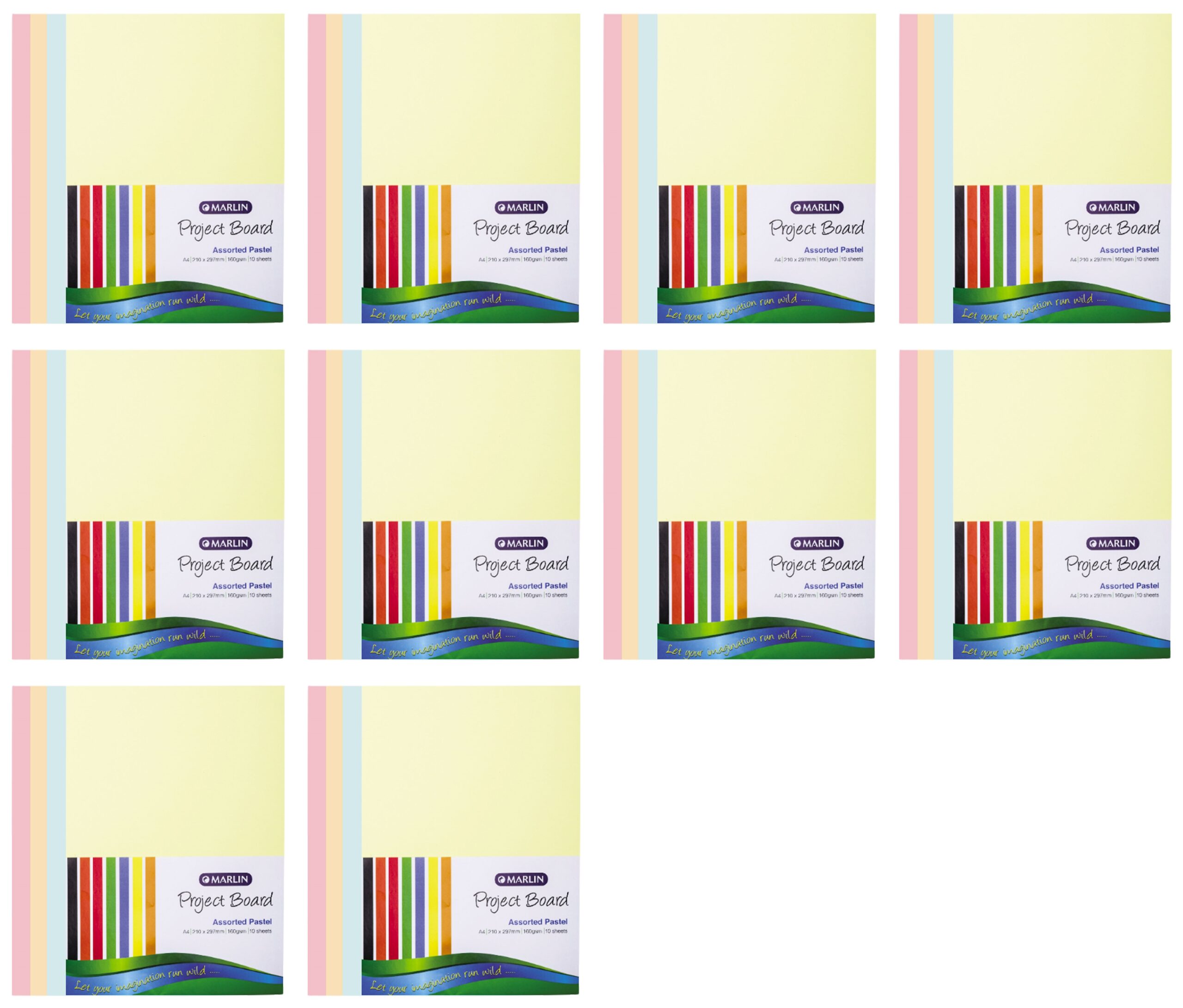 Marlin Project Boards A4 160gsm 10’s Pastel Assorted