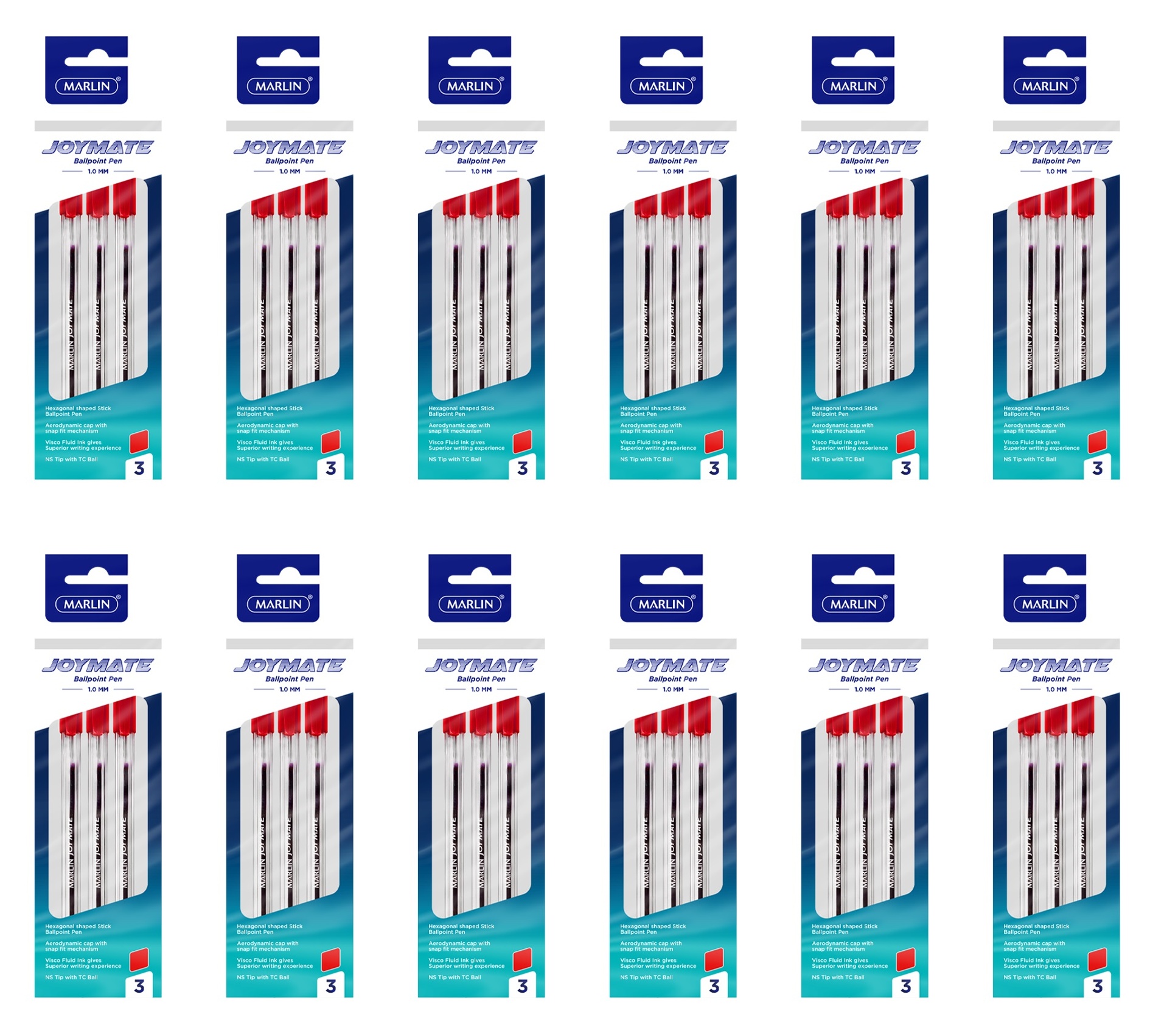 Marlin JOYMATE Ballpoint Pens, Medium Point-1.0mm, Red Ink, 3 pcs in a Polybag