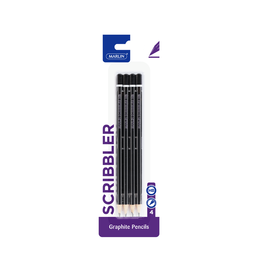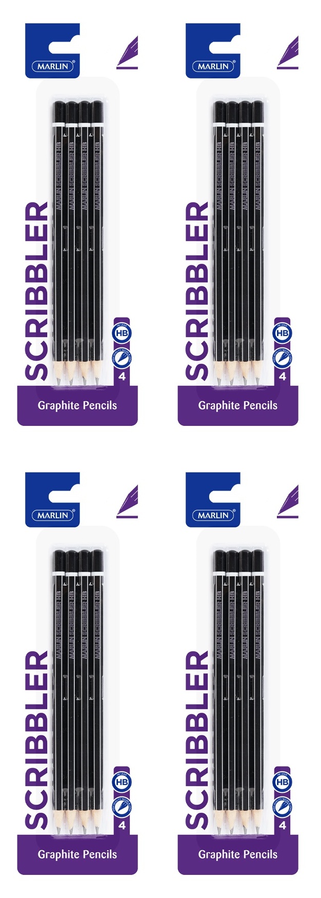 Marlin Scribblers Hb End Dipped Pencil Black & Silver Striped Blister Card 4’s