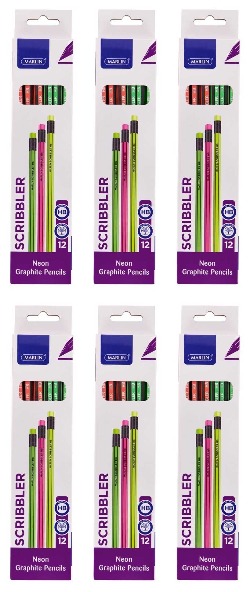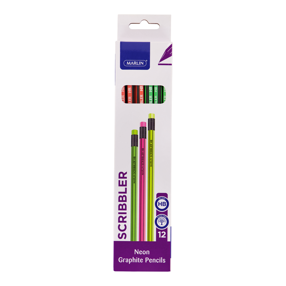 Marlin Scribblers HB Neon Rubber-Tipped Pencils