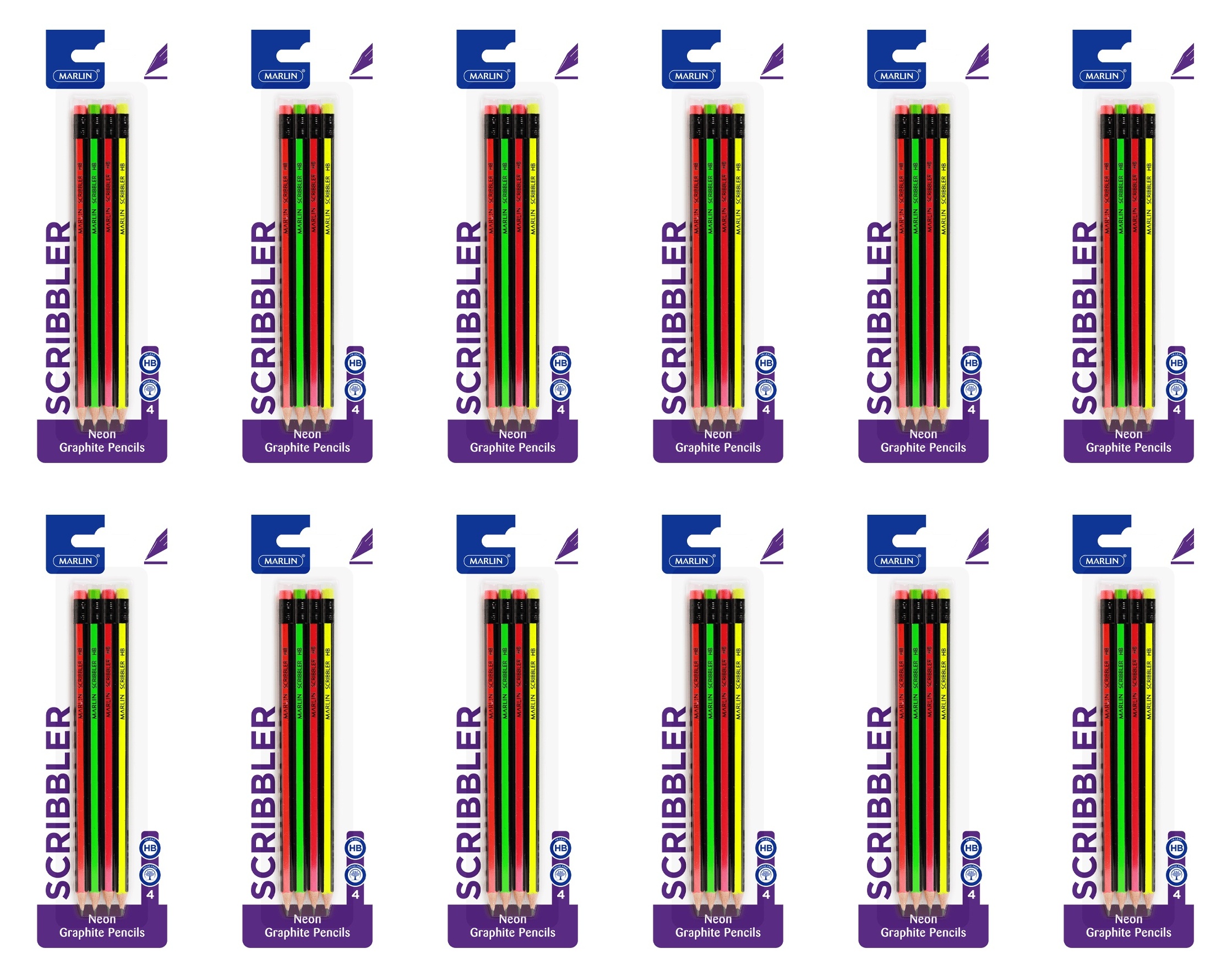 Marlin Scribblers HB rubber tipped 4’s Neon